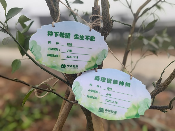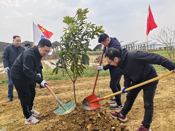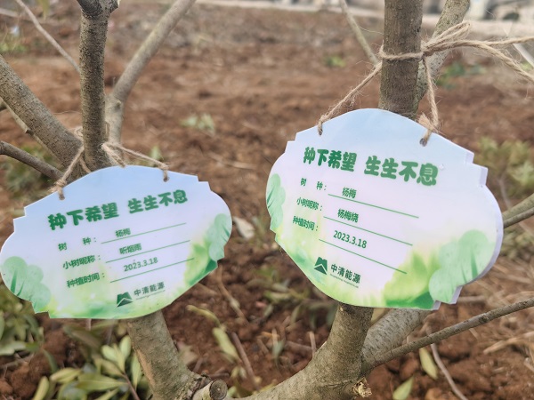 全體職工在中清能源黨支部書記、總經理岳福建帶領下,栽種由員工出資認購的樹苗40余棵。